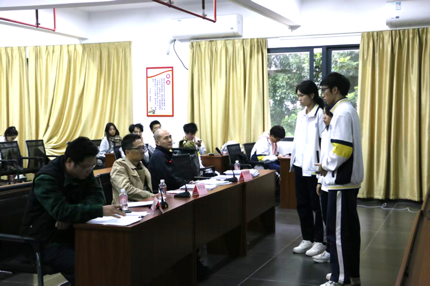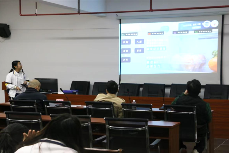 陈述环节结束后,进入3分钟互动问答环节。评委们针对项目短板、方案细节、市场风险等维度精准提问,既指出项目存在的不足,也给出切实可行的优化建议。参赛队员沉着应答、积极交流,在思想的碰撞中进一步明晰了项目完善方向。工作人员通过举牌提醒严格把控时间,确保答辩流程高效有序推进。