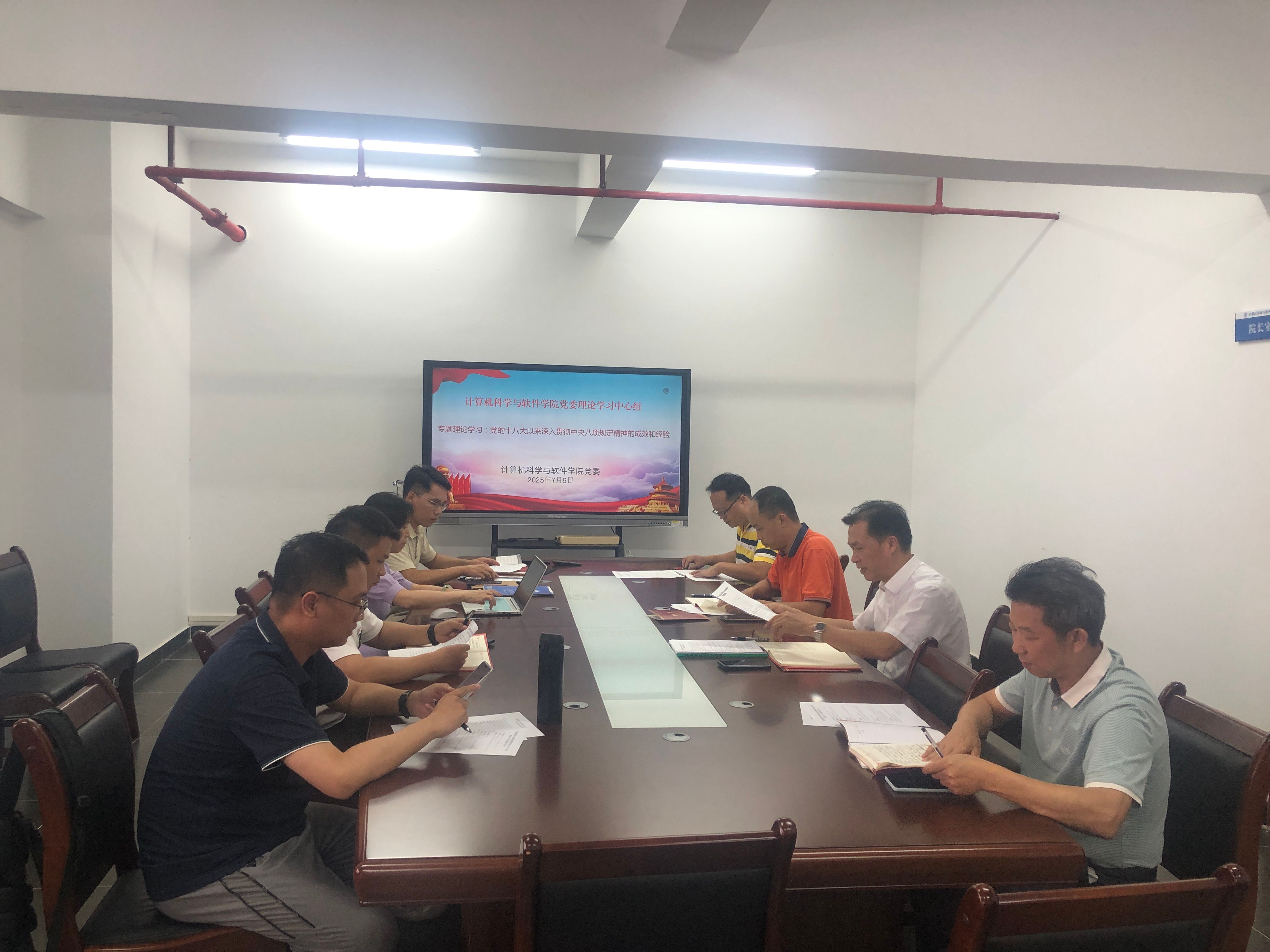 7月9日下午,计算机公司党委理论学习中心组在公司办公楼319室开展专题学习活动。会议由公司党委书记黎天宇主持,公司党委委员、党政班子成员、专职组织员、党支部书记等参加了此次学习。
