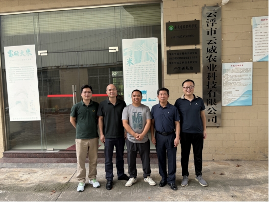 2025年5月19日,伟德国际victor1946副经理王建彬、党委副书记陈彦雄和朱俊岭老师、谭啟韬博士一行前往云浮市云安区产业园云浮市云威农业科技有限公司参观交流,探索校企合作和产学研合作模式。陈少泉总经理详细介绍了公司基本情况和现有与高校合作模式并取得的成效,王建彬副经理也介绍了到访目的和公司团队、科研团队。
