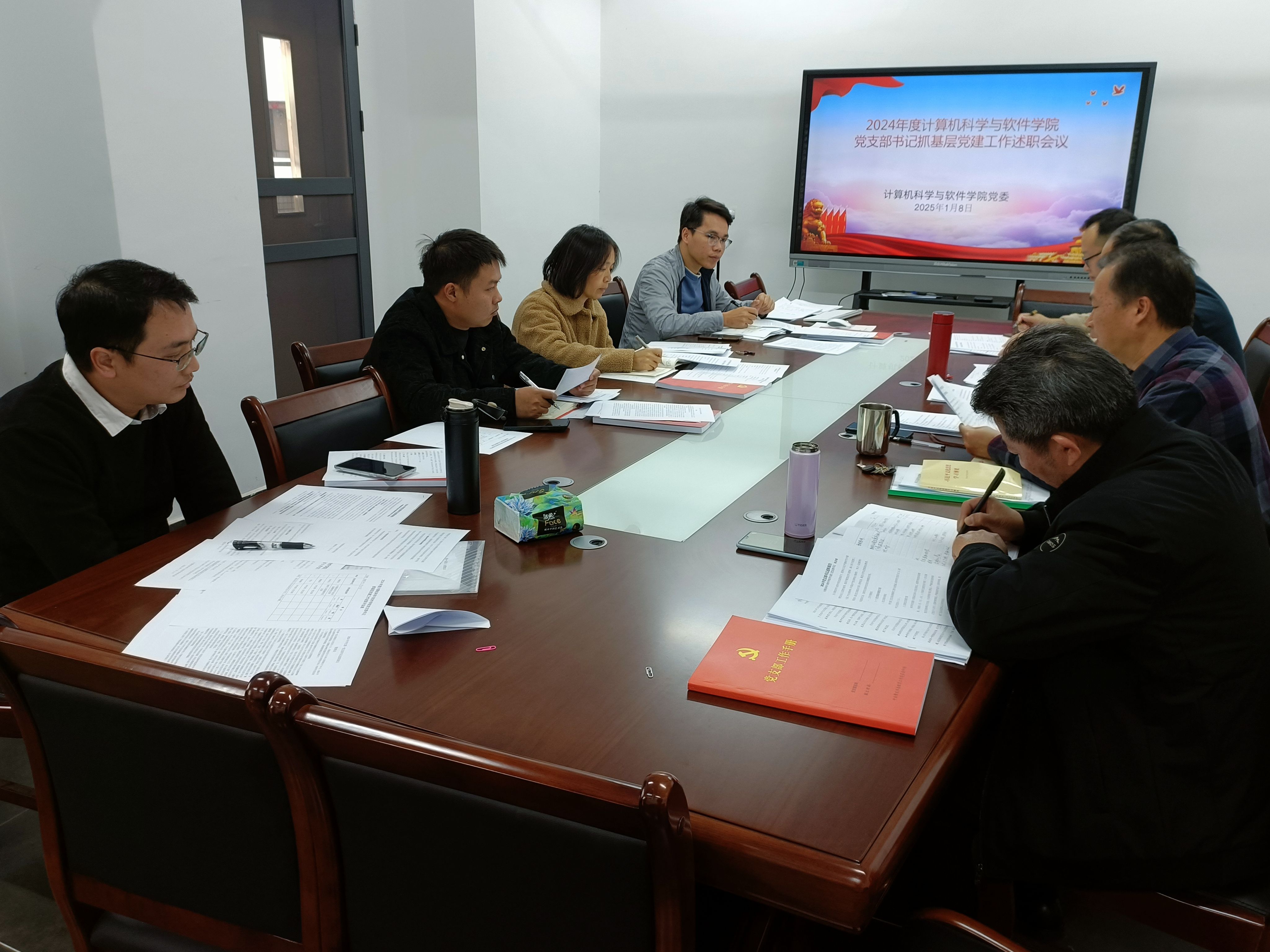 会上,党支部书记依次汇报了2024年度抓支部党建工作情况,其中教工党支部书记重点围绕支部政治理论学习情况,主题党日、三会一课的落实完成情况,师德师风建设情况等开展述职。员工党支部书记述职主要围绕支部理论学习情况,主题党日、三会一课的落实完成情况,发展党员等情况开展述职。述职报告内容丰富、条理清晰、重点突出。同时,党支部书记们也分析了支部党建工作当前存在的问题与不足,并对2025年的党建工作进行了展望。