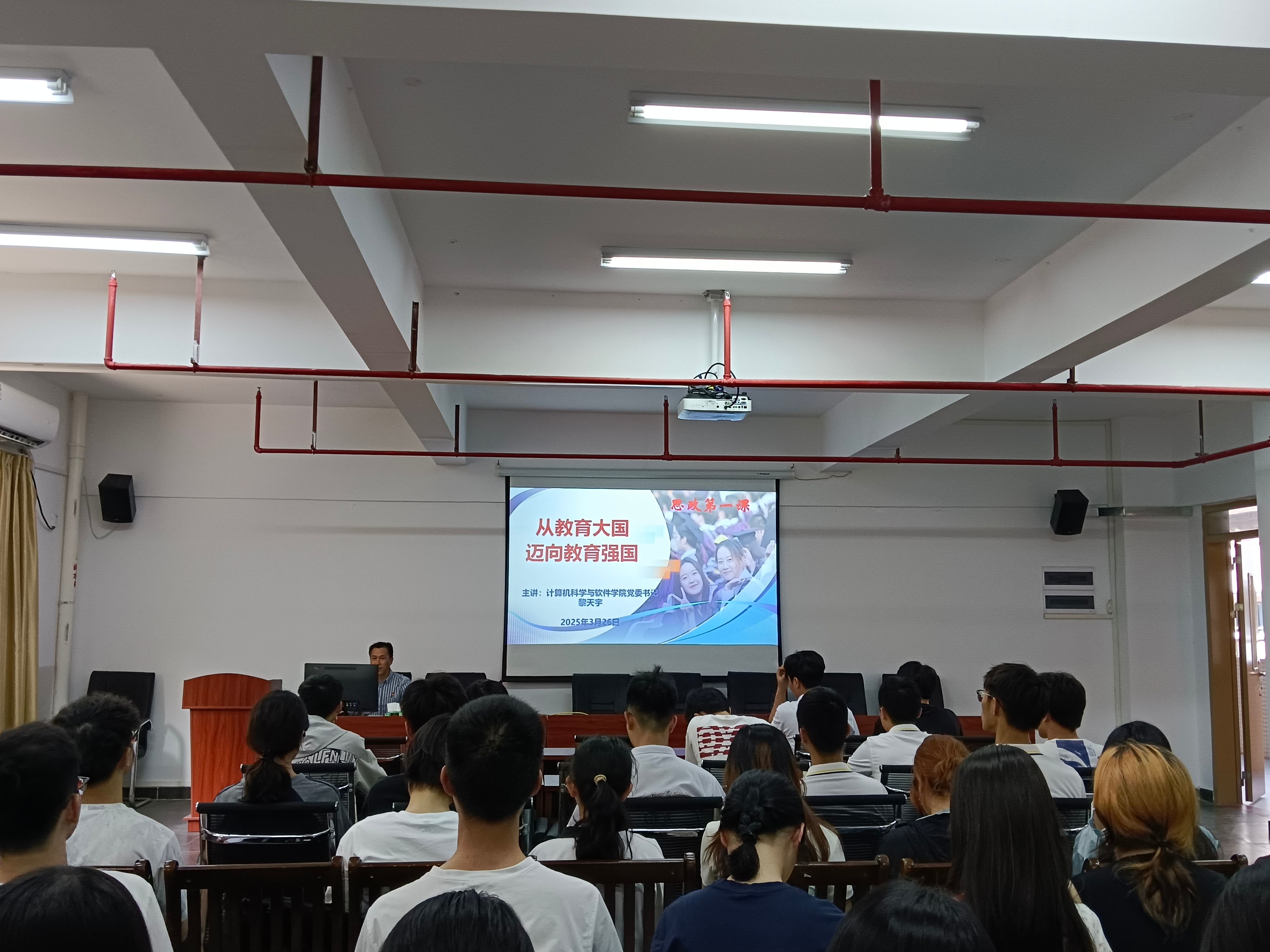 3月25日和26日,公司党委书记黎天宇和公司副经理(主持行政全面工作)王俊波以“从教育大国迈向教育强国”为主题,分别为2024级计算机科学与技术1班全体员工和60多名入党积极分子授了一堂生动的“思政第一课”。