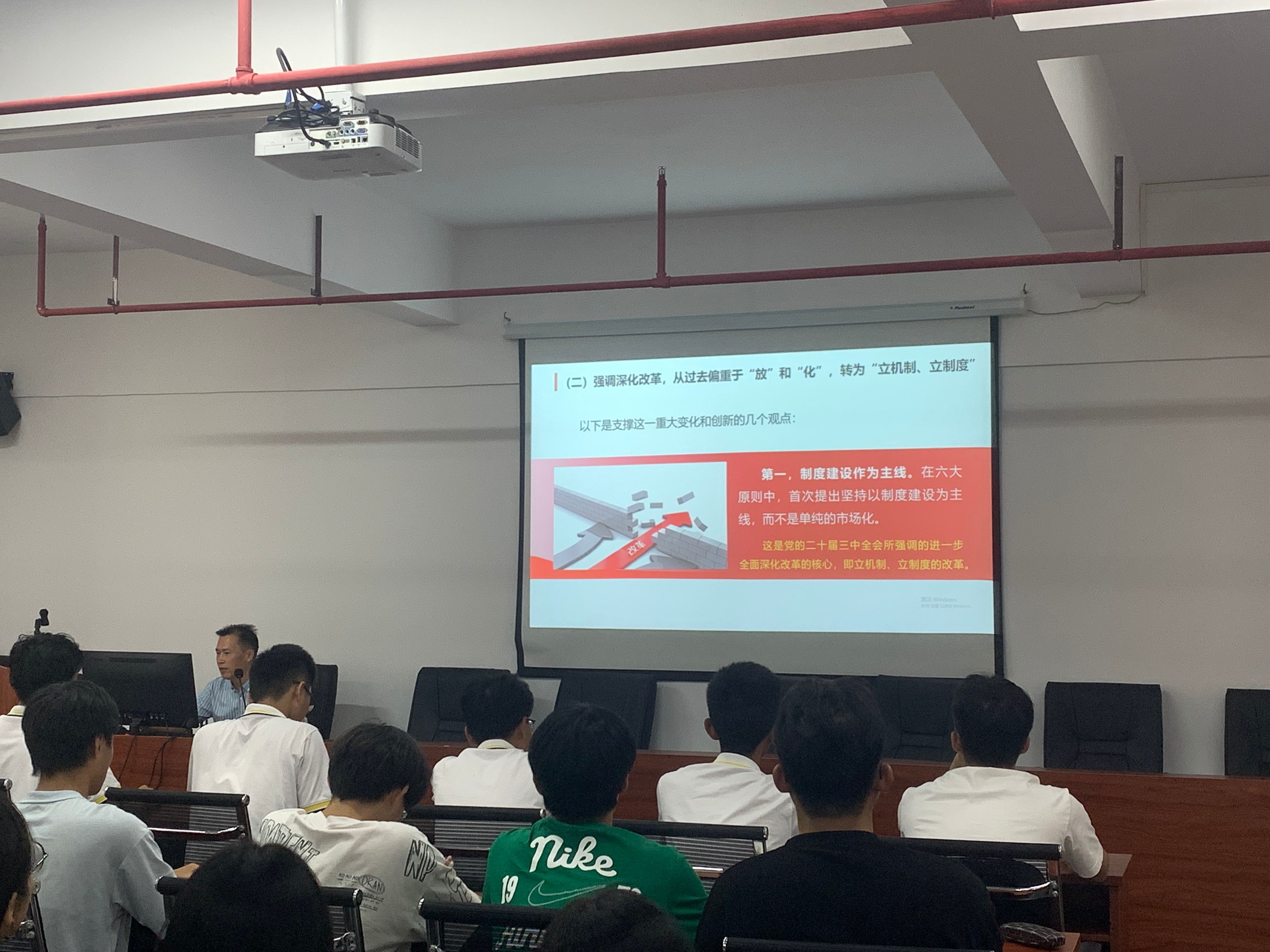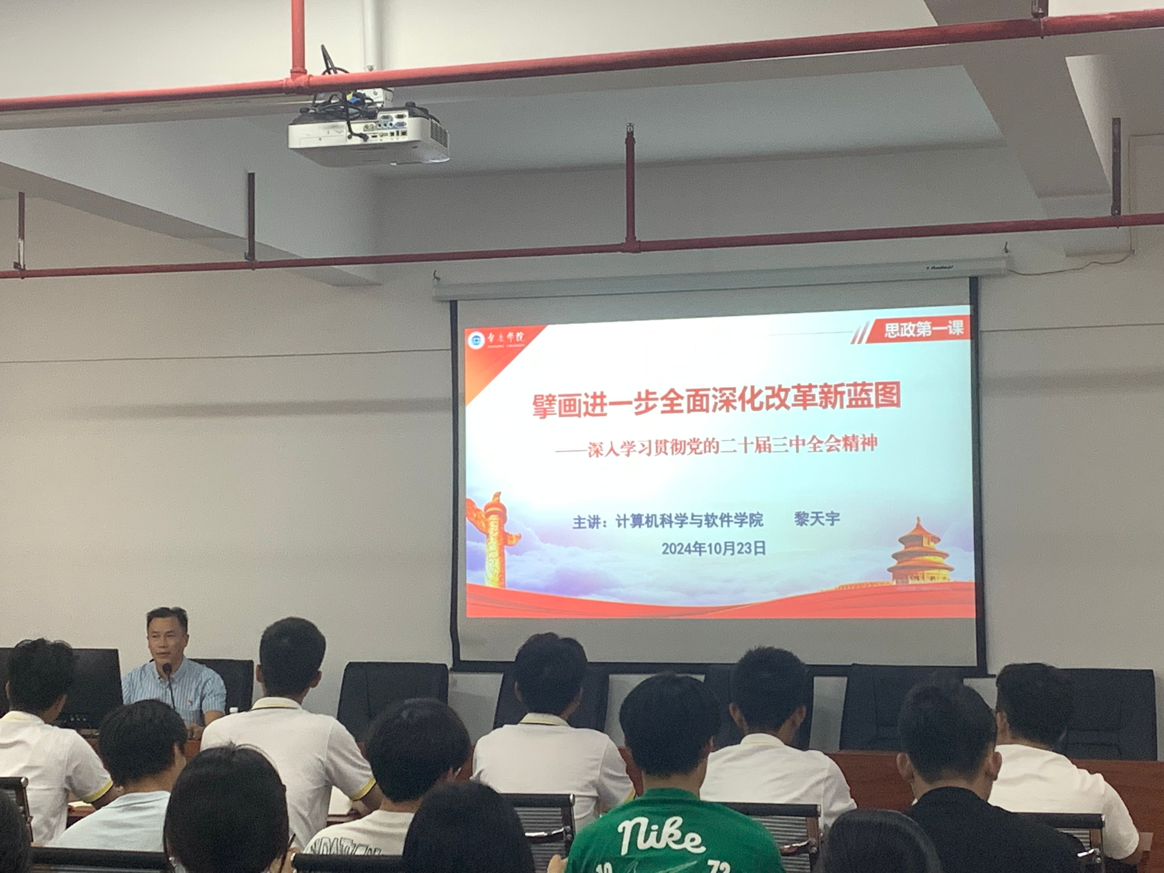 10月23日下午,计算机科学与软件公司党委书记黎天宇以“擘画进一步全面深化改革新蓝图——深入学习贯彻党的二十届三中全会精神”为主题,给2024年全体入党申请人带来了的第一堂思政课。黎天宇深入解读了党的二十届三中全会精神,激励员工积极投身中国式现代化建设的火热实践,充分展现华工青年担当。