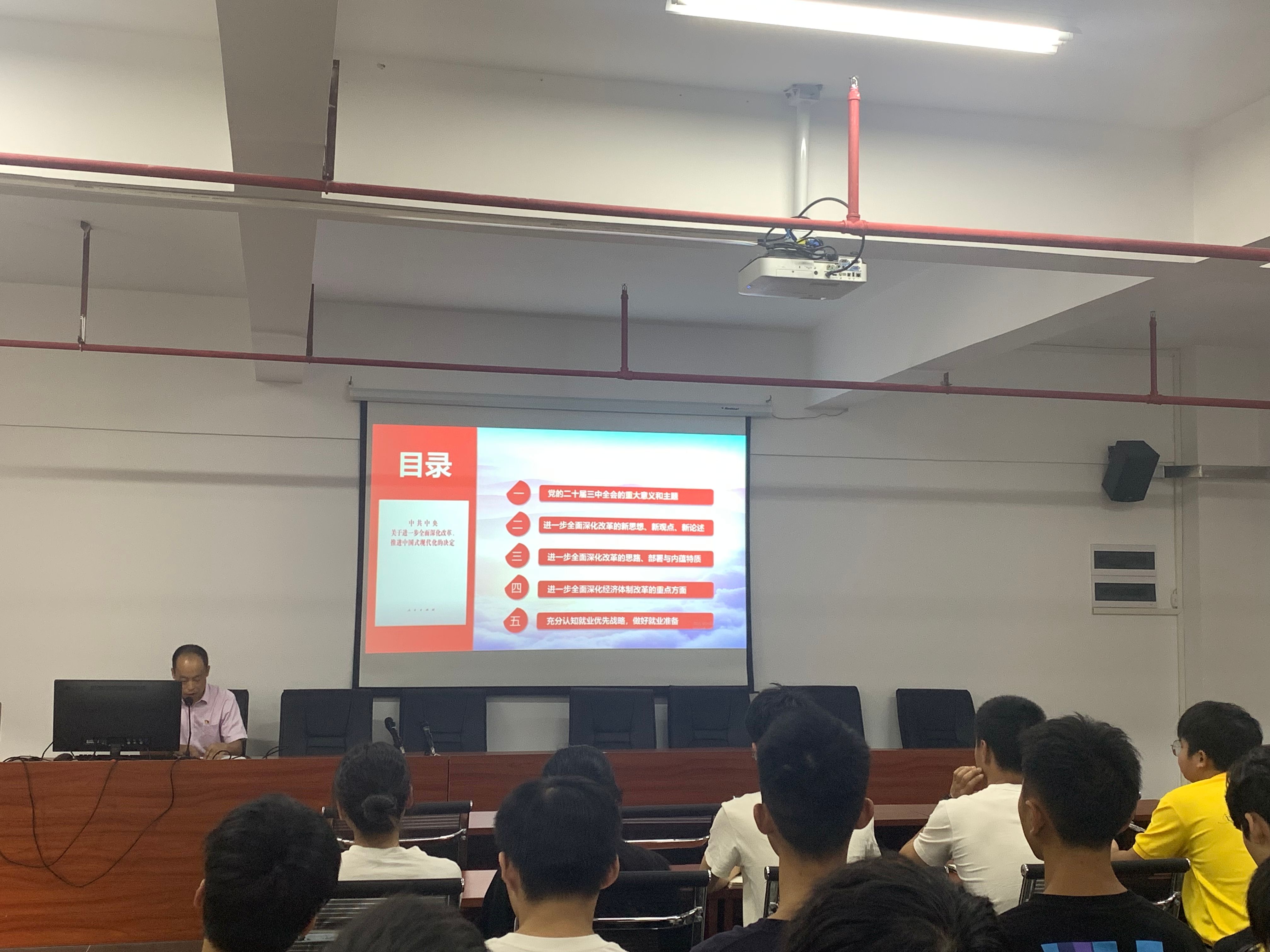 为深入学习贯彻落实党的二十届三中全会精神,推动党的理论成果进校园,引导员工坚定理想信念,争当时代新人,增强学习贯彻全会精神的思想自觉和行动自觉,2024年10月9日下午,公司副经理(主持行政全面工作)王俊波以“擘画进一步全面深化改革新蓝图——深入学习贯彻党的二十届三中全会精神”为主题,为同学们讲授思政第一课,启迪同学们感悟当代青年的历史使命与时代责任,以青春之力书写中国式现代化新篇章。