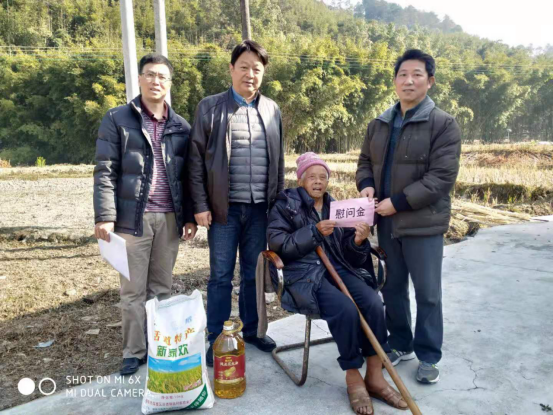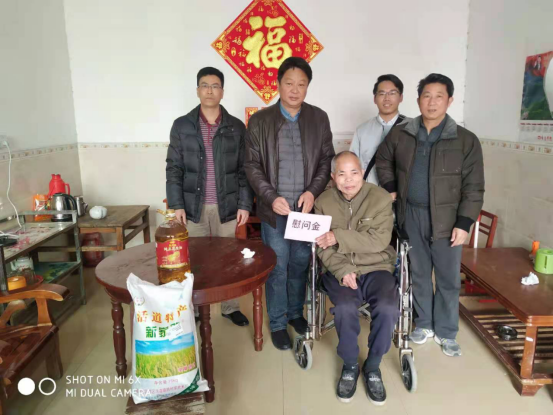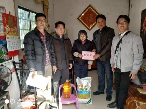 1月14日,计算机公司党委书记李坚、党委副书记陈彦雄、办公室主任梁新怀和辅导员梁燕龙深入公司对口帮扶村---广宁县横山社区分坳村走访慰问贫困户。