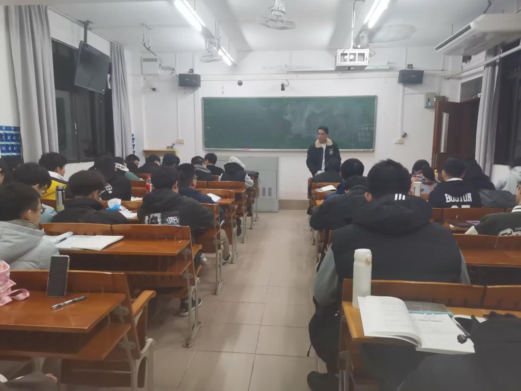 为落实新学期员工返校工作各项要求,进一步加强新学期员工返校后的思想引领,激励员工树立全新的学习目标,增强员工的安全防范意识,督促员工调整好身心状态,以崭新的姿态、昂扬的斗志、饱满的精神投入到新学期学习生活中。2月26日晚上,2023级辅导员梁燕龙在晚自修课室中组织员工召开“2024春季开学第一次年级会议”。