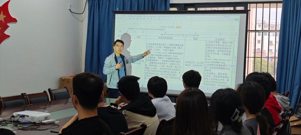 此次会议中,团委书记梁燕龙辅导员从基本原则、活动内容及时间和公司团日活动安排三部分展开说明。在基本原则中,强调了此次活动的四项基本原则:突出政治引领、激励挺膺担当、尊重青年特点以及加强示范带动,并说明此次活动团员要做到积极带领,鼓励班级群众也加入到此次活动中。在公司团日活动安排中,梁燕龙辅导员展示了各班活动安排对应的主题、时间以及注意事项,主题具有当月特色,比如三月的《弘扬雷锋精神》主题和四月的《传承红色基因》主题。在会议最后,梁燕龙辅导员重点介绍了相关注意事项,包括活动开展前要求提前写好班级方案以及活动后写好推文、活动期间做好记录和拍照以及保障好同学的安全。