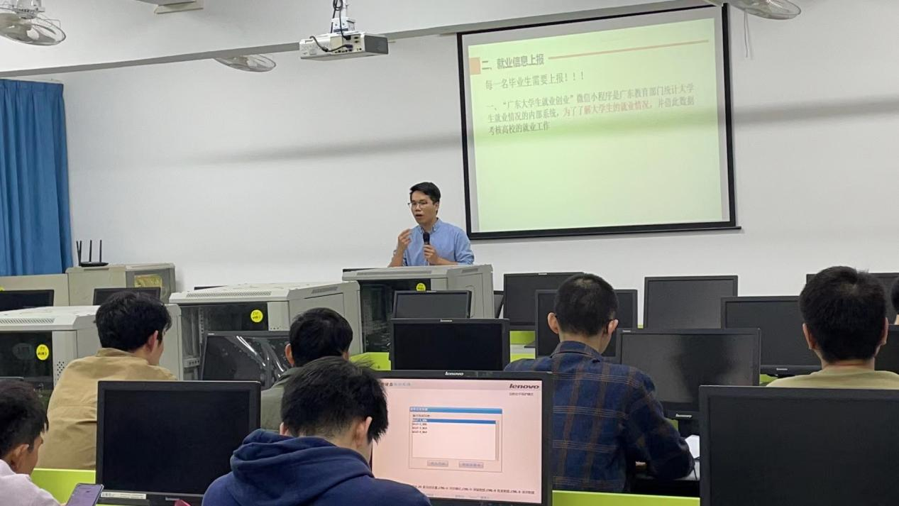 辅导员梁燕龙老师主要给同学们讲解了如何择业、笔试技巧以及面试时的常见问题、如何缓解紧张心理、如何面对突发情况等内容。梁老师建议毕业生首先在投简历前要了解工作内容和职务,了解单位情况、发展方向、薪酬假期等福利;其次在笔试前要认真查阅与其相关资料、做好考前准备、克服紧张心理认真审题;接着在面试时要注重仪容仪表、行为举止,充分准备面试材料、对可能的问题做好准备,面试时要调整好状态从容自信的面对考官。并且在会议的最后对员工提出的问题进行了答疑。
