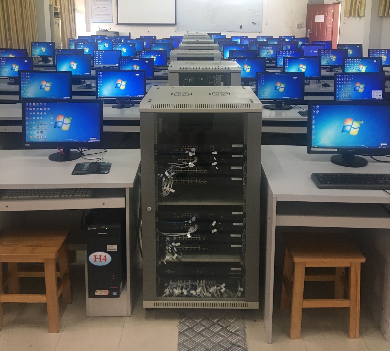现有电子技术综合实验室、计算机组成原理实验室、员工创新实践基地、网络技术实验室、软件基础实验室(Ⅰ)、软件基础实验室(Ⅱ)、软件基础实验室(Ⅲ)、软件综合实验室、软件工程实验室、程序设计互动教学实验室(Ⅰ)、程序设计互动教学实验室(Ⅱ))等为网络工程提供实验、实训场地, 其中,网络技术实验室能够支撑计算机网络、计算机网络工程、路由与交换技术等核心课程的实践教学,较好地满足网络工程专业实践教学需求。