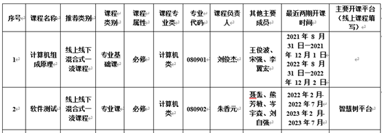 表中所有推荐课程已经资格审查,符合参评条件要求;所有相关课程申报书及申报材料均经过评审,现予以公示,