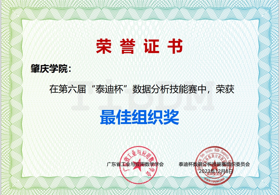 近日,第六届“泰迪”杯数据分析技能赛圆满结束,该比赛由泰迪杯数据分析技能赛组织委员会、广东泰迪智能科技股份有限公司、广东省工业与应用数学学会、人民邮电出版社等单位共同举办,于2023年9月9日正式开始,至2023年11月12日结束,竞赛以1名指导老师3名员工为一个队伍参赛,共有来自全国300所高校的1638支队伍报名参赛,公司组织了41只队伍参加了本次竞赛,以公司中巴实验室作为比赛场所,组织员工参加本次竞赛,经过高校和公司共同组成的评审专家组历时半个月的盲审,最终公司学子取得一等奖10项,二等奖11项,三等奖29项的喜人成绩,并因比赛组织有序,赛事成绩优异,获得大赛“最佳组织奖”。