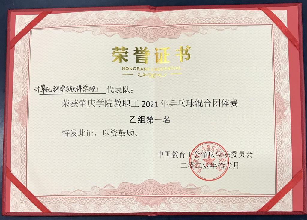 实验室成员参与2021年职工乒乓球比赛荣获乙组第一名