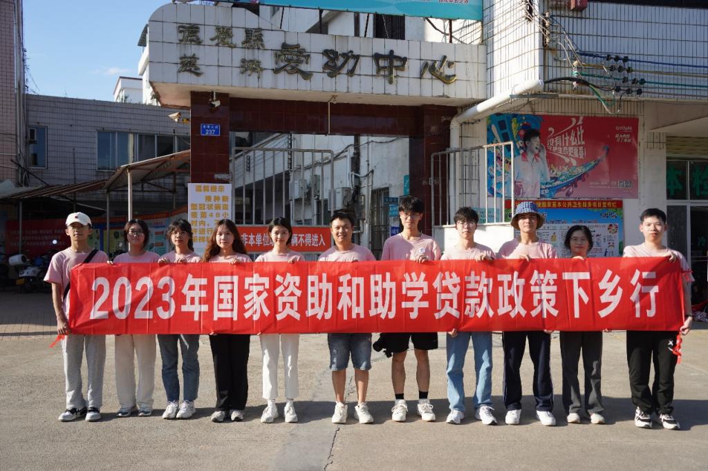 2023年7月6日,为国家资助和助学贷款政策普及到基层,调研当地居民对资助政策的了解程度。公司辅导员邹卫老师,带队前往德庆县新圩镇,在卫生院公共卫生科广场处进行摆摊宣传。