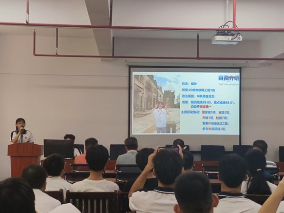 会议伊始,主持人辅导员邹卫老师宣读了国家奖学金评选条件,流程及公布了此次国家奖学金候选人名单20科技1班赖泽琳,20物联网1班侯妙,21物联网2班郑奕帆,21科技1班蔡佳烁,22科技2班 林宇翔。随后由各位候选人按顺序进行自我介绍和班主任评议,演讲结束后,参会人员确定好自己心目中的人选并且进行投票,负责人宣读投票结果并公布候选人的最终成绩。通过学业成绩、综合素质测评及投票进行分数统计,以下为各候选人的最终得分,侯妙76.08分,蔡佳烁75.50分,赖泽琳74.70分,林宇翔73.49分,郑奕帆70.48分。根据最终分值从高到低,得出2022-2023学年度国家奖学金获奖人员为20物联网1班侯妙和21科技1班蔡佳烁。