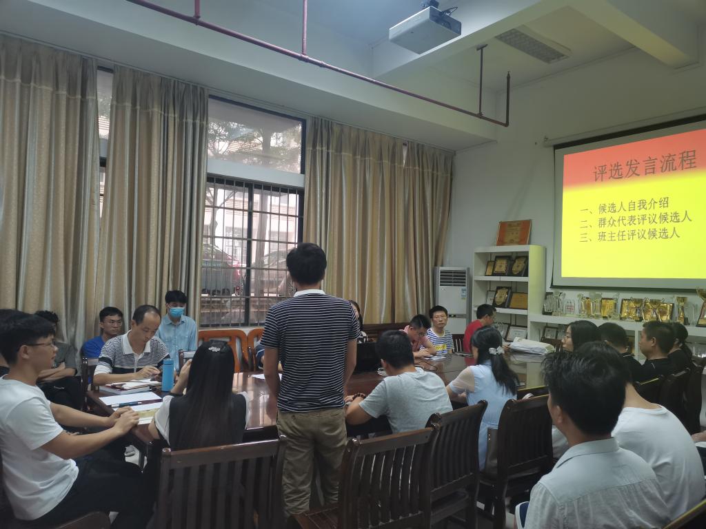 9月23日下午15:40,公司于中巴软件楼104举办了2019-2020学年度国家奖学金评定会议,出席此次会议的人员有公司领导陈彦雄副书记、辅导员、各班班主任、各班员工代表、朋辈辅导员、团委副书记、员工会主席等人员。