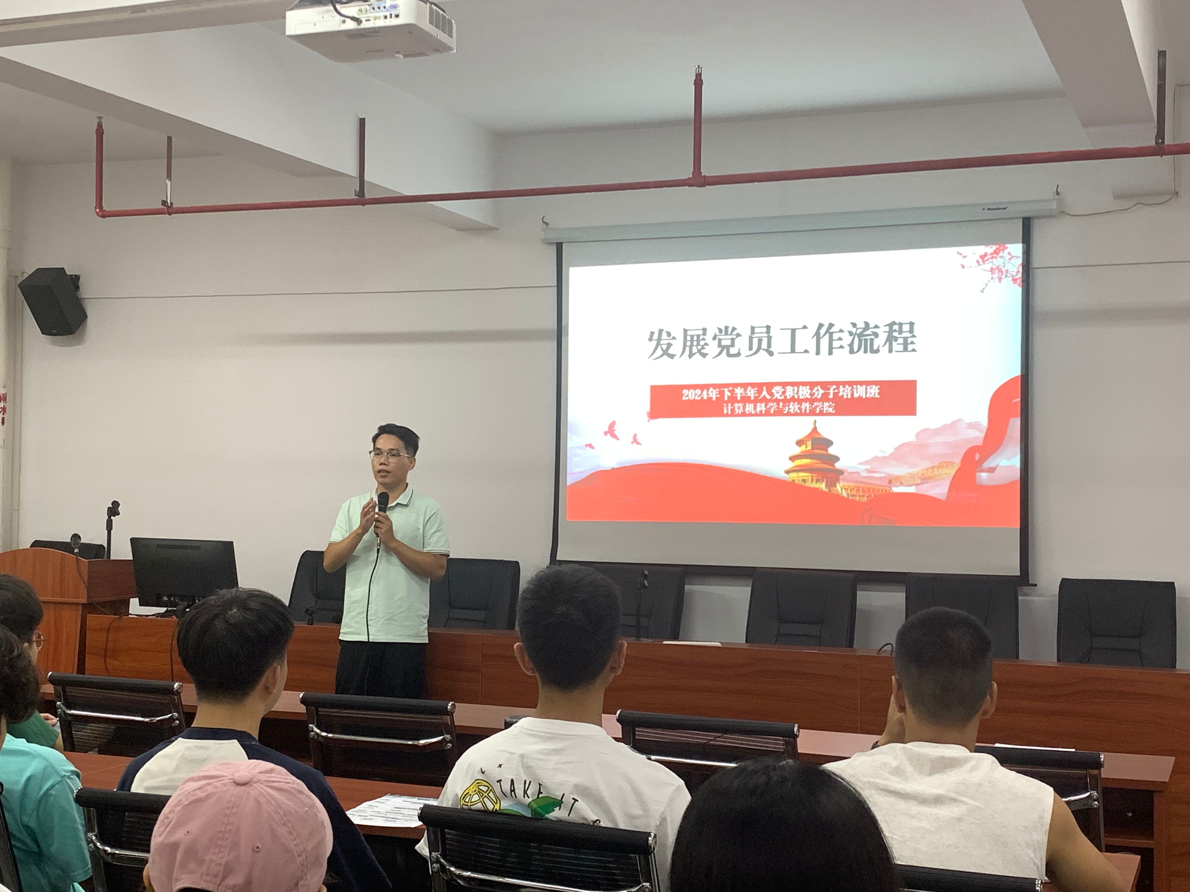 随后,梁燕龙作本次培训班入党第一课,主题为员工党员发展流程。梁老师从递交入党申请书、入党积极分子的确定和培养教育、发展对象的确定和考察、预备党员的接收、预备党员的教育考察和转正五个方面详细介绍了发展党员的工作流程和要求。谢老师指出严格履行党的发展流程是为了保证党员质量,保证党员队伍的先进性和纯洁性。